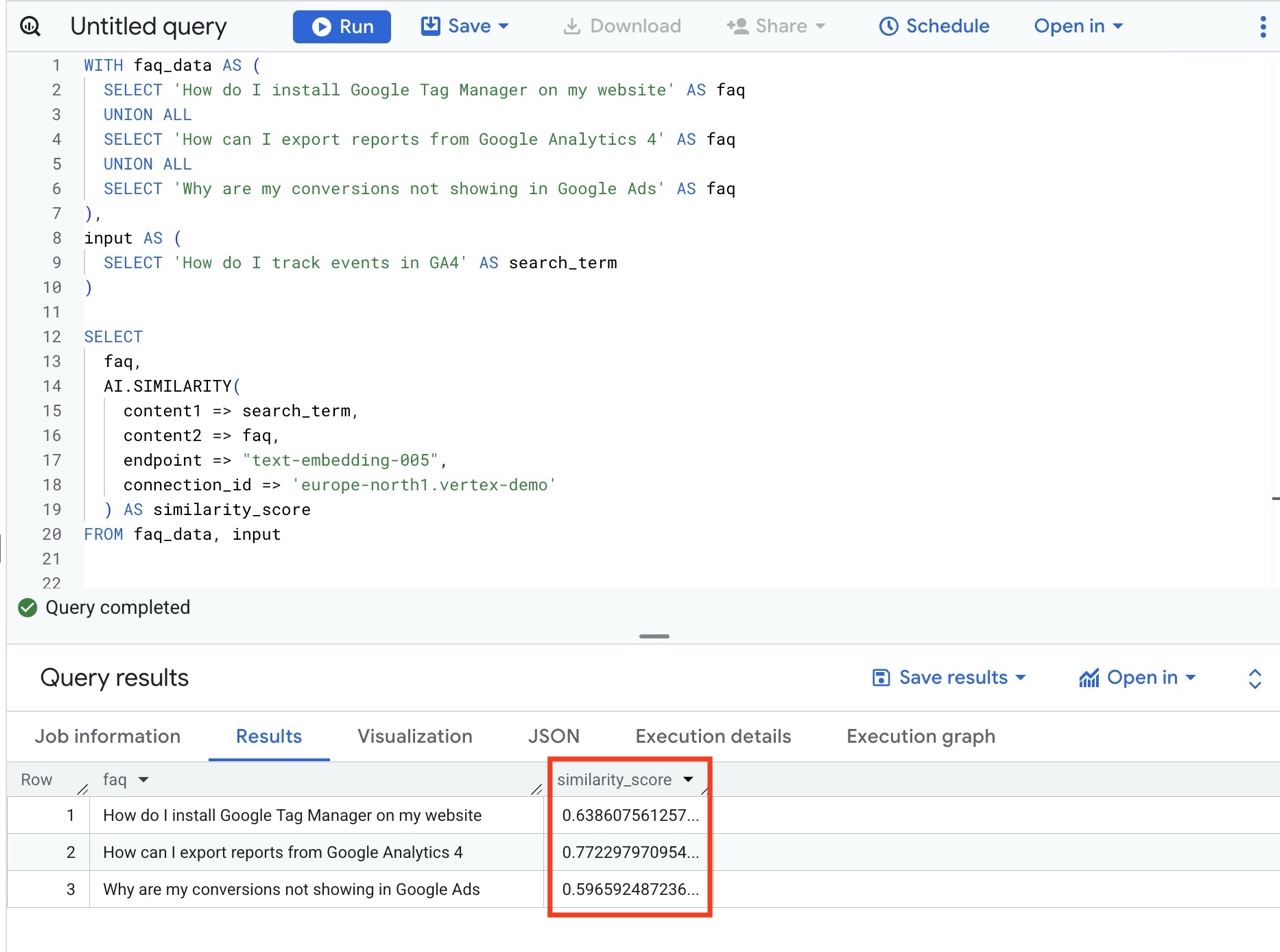 SQL Example of AI.SIMILARITY()