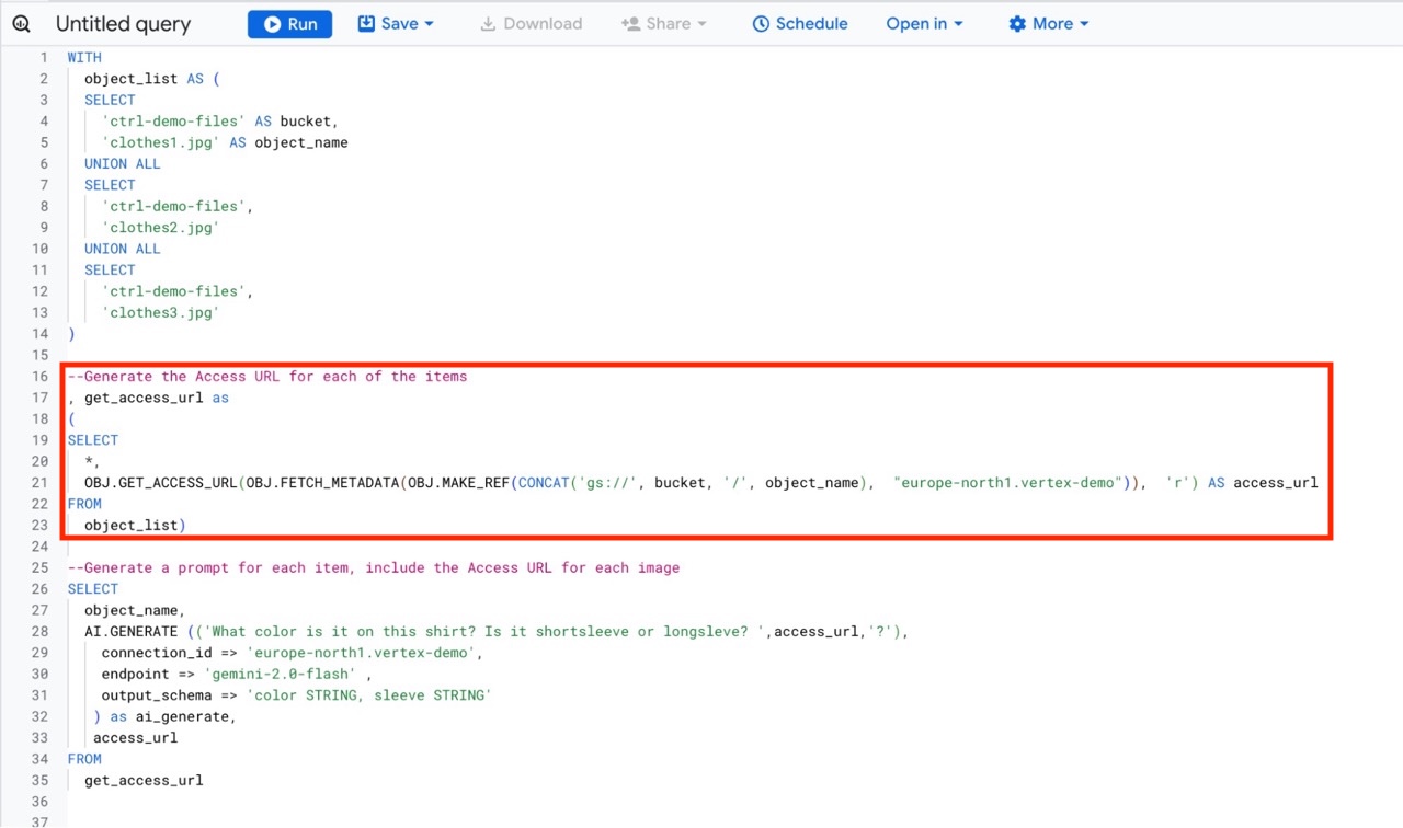 OBJ.GET_ACCESS_URL(OBJ.FETCH_METADATA(OBJ.MAKE_REF(CONCAT('gs://', bucket, '/', object_name), "europe-north1.vertex-demo")), 'r') AS access_url