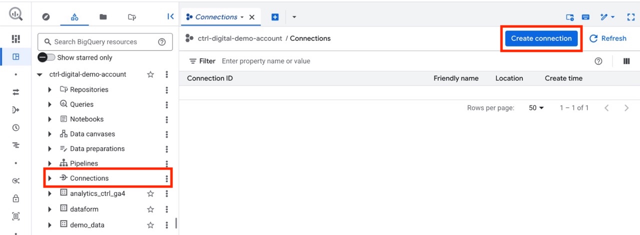Open BigQuery Studio in the Google Cloud console, navigate to the Connections page.