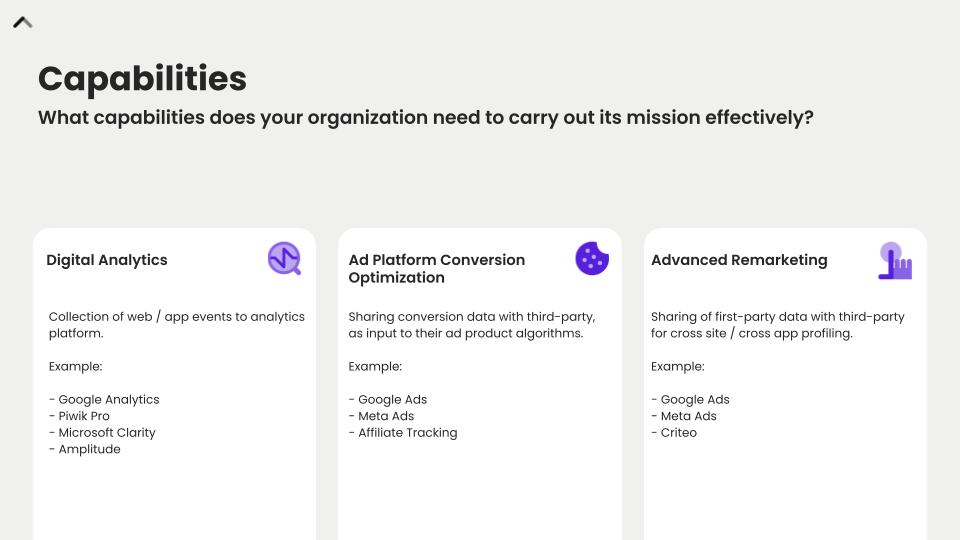 Instead of starting with which tools to use, begin by defining the capabilities your organization needs to do its job effectively. Is it the ability to measure campaign performance, track user journeys, or manage consent properly? Once the needs are clear, it’s easier to choose tools and solutions that support both your business goals and privacy requirements.