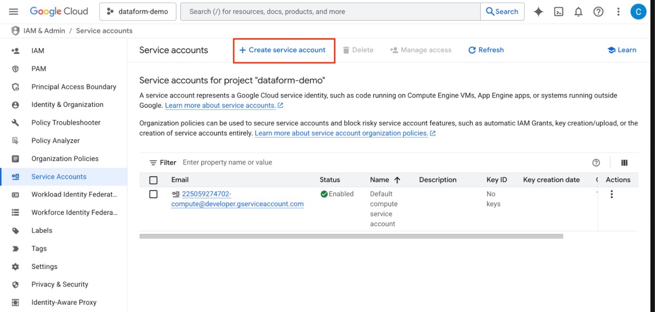Go to IAM & Admin → Service Accounts, then click Create Service Account.